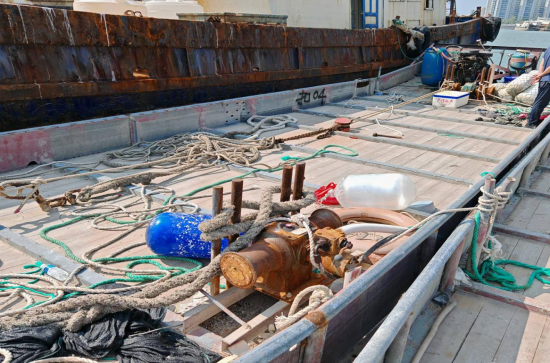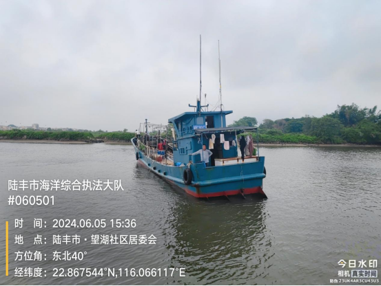 2024年6月5日,陸豐市海洋綜合執(zhí)法大隊(duì)在陸豐市湖東對開海域查獲一艘無船名號標(biāo)識的鋼質(zhì)船舶(編號扣01),總長23米,型寬4.15米,主機(jī)1部,主機(jī)功率309KW,主機(jī)型號WP12420E32。