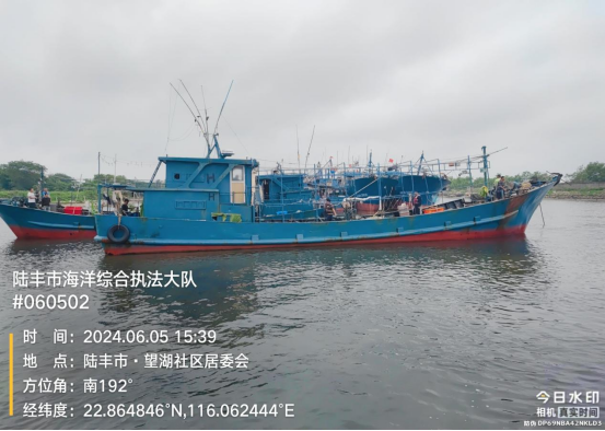 2024年6月5日,陸豐市海洋綜合執(zhí)法大隊(duì)在陸豐市湖東對開海域查獲一艘懸掛“汕濠廣503(廣)”標(biāo)識的鋼質(zhì)船舶(編號扣02),總長21.4米,型寬3.5米,主機(jī)1部,主機(jī)銘牌不詳,主機(jī)型號不詳。