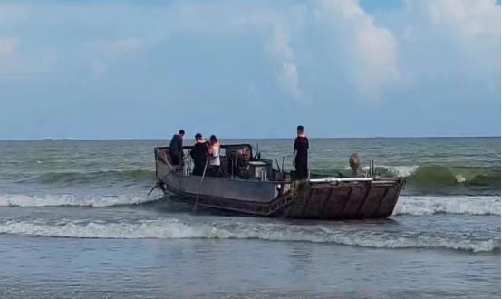 2024年6月15日,汕尾海洋綜合執(zhí)法支隊(duì)在陸豐市金廂鎮(zhèn)周厝村附近沙灘查獲一艘無船名號標(biāo)識的鋼質(zhì)船舶(編號扣20),總長13.2米,型寬3.75米,主機(jī)2部,主機(jī)功率53KW(左主機(jī)OM36PM,功率26.5KW;右主機(jī)OM36PM,功率26.5KW)。