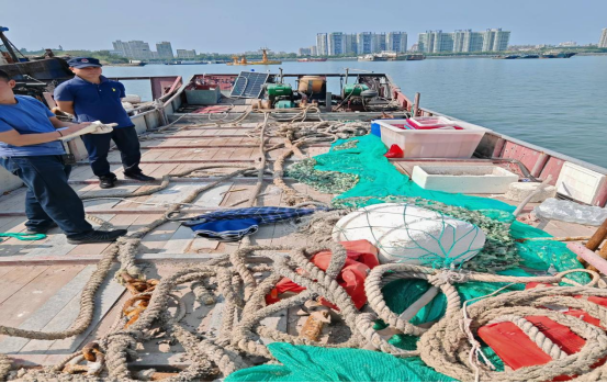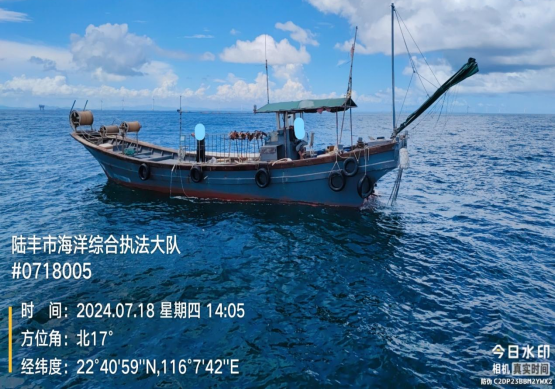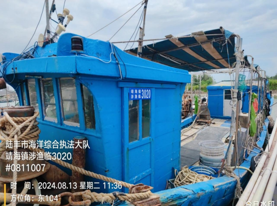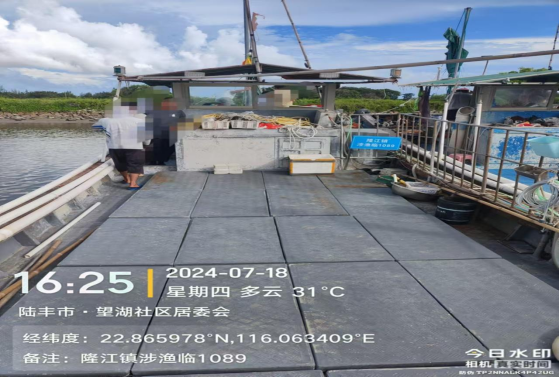 2024年8月12日,汕尾市海洋綜合執(zhí)法支隊(duì)聯(lián)合陸豐市海洋綜合執(zhí)法大隊(duì)在甲東與神泉對開海域查獲一艘懸掛“靖海鎮(zhèn)涉漁臨3020”牌號的玻璃鋼船舶(編號扣15),總長16.9米,型寬3.61米,主機(jī)1部,主機(jī)銘牌不詳,主機(jī)型號不詳。