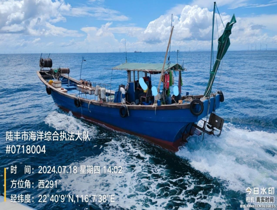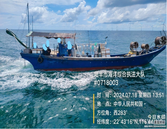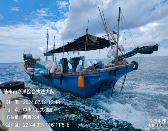 2024年7月18日,陸豐市海洋綜合執(zhí)法大隊(duì)在陸豐市甲東對開海域查獲一艘懸掛“神漁臨1083”牌號的玻璃鋼船舶(編號扣12),總長15.8米,型寬3.35米,主機(jī)2部,主機(jī)銘牌不詳,主機(jī)型號不詳。