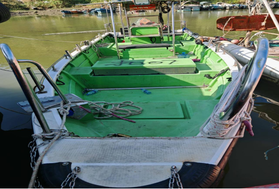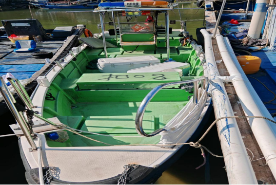 2024年9月11日,汕尾市海洋綜合執(zhí)法支隊(duì)在陸豐市烏坎港內(nèi)查獲一艘標(biāo)識“利群救援”“06”的玻璃鋼船舶(編號扣08),總長9.8米,型寬2.35米,船上沒有主機(jī)設(shè)備。
