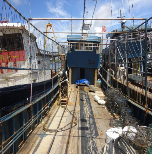 4.編號(hào)“扣4”船舶,船上沒(méi)有船名號(hào)標(biāo)識(shí),船體材質(zhì)鋼質(zhì),總長(zhǎng)24.25米,型寬4.13米,主機(jī)1部,未見(jiàn)主機(jī)銘牌,主機(jī)型號(hào)不詳,主機(jī)功率不詳;