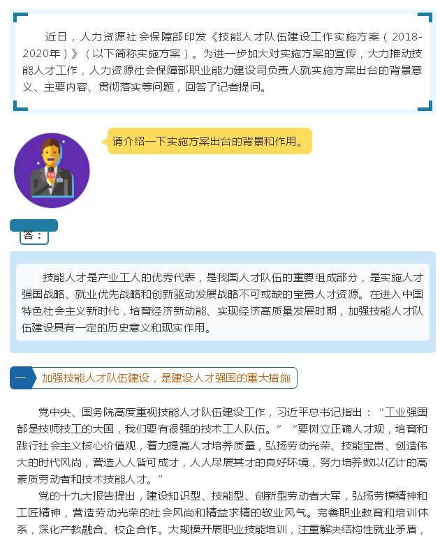人社部權威解讀《技能人才隊伍建設工作實施方案(2018-2020年)》
