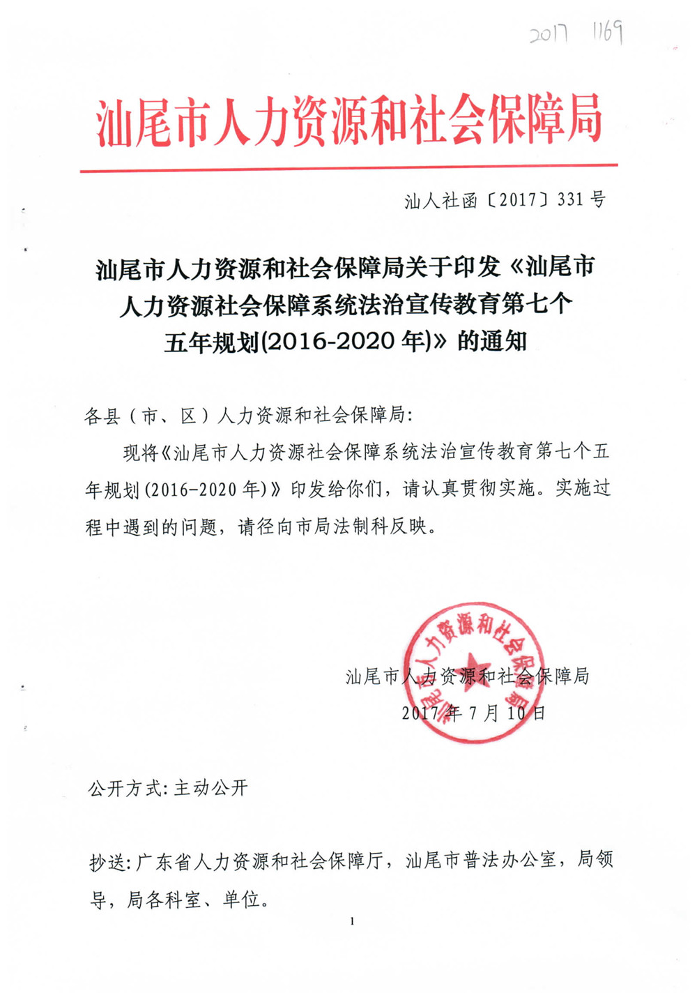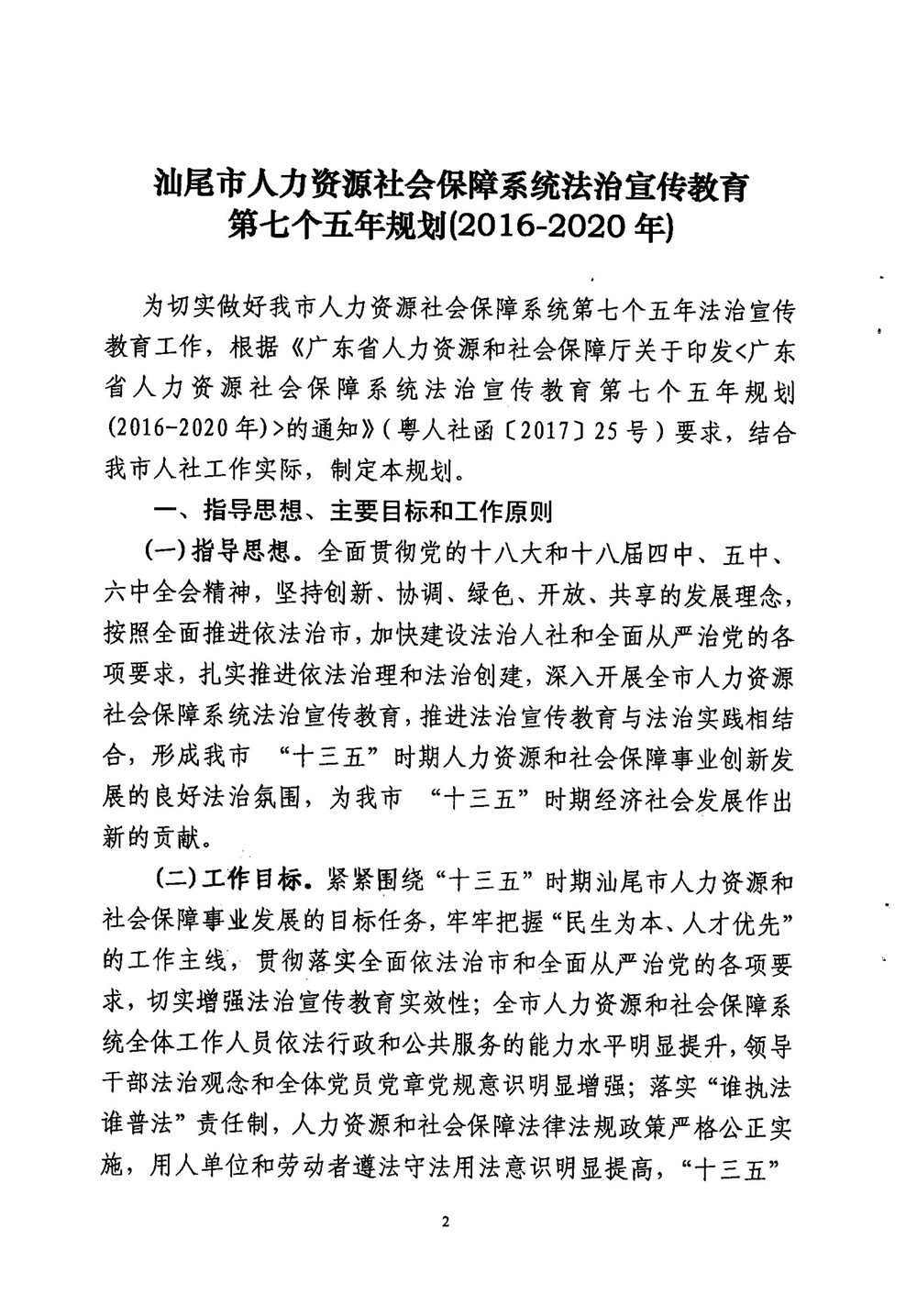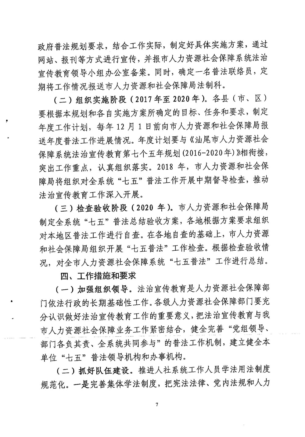 汕尾市人力資源和社會保障局關(guān)于印發(fā)《汕尾市人力資源社會保障系統(tǒng)法治宣傳教育第七個五年規(guī)劃(2016-2020年)》的通知