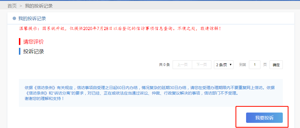 當(dāng)您“確認(rèn)”后,將進(jìn)入“我的投訴記錄”頁面,點(diǎn)擊下方“我要投訴”填寫您的投訴內(nèi)容。