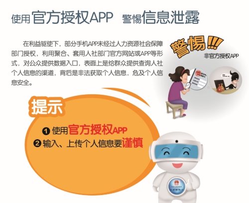 為防止不法分子蓄意竊取、利用人社個(gè)人信息,公眾在使用非官方授權(quán)APP、非人社部門網(wǎng)站查詢?nèi)松鐐€(gè)人信息等相關(guān)業(yè)務(wù)時(shí)應(yīng)提高警惕,積極防范,應(yīng)通過官方渠道辦理相關(guān)業(yè)務(wù)。