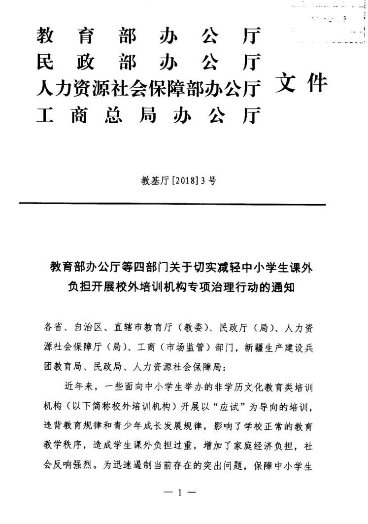 關(guān)于印發(fā)切實(shí)減輕中小學(xué)生課外負(fù)擔(dān)開展校外培訓(xùn)機(jī)構(gòu)專項(xiàng)治理方案的通知