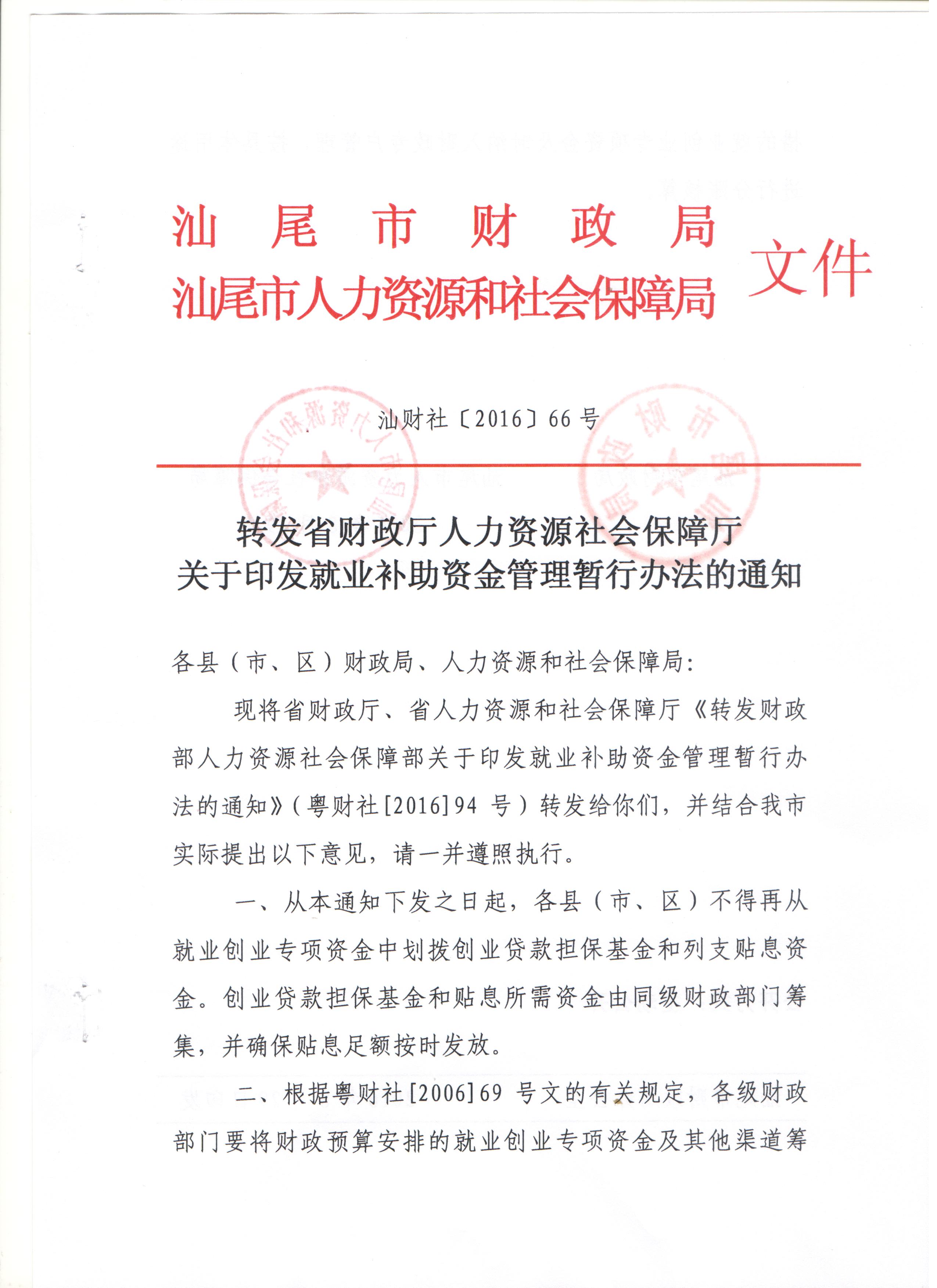 轉(zhuǎn)發(fā)財(cái)政部人力資源社會(huì)保障部關(guān)于印發(fā)就業(yè)補(bǔ)助資金管理暫行辦法的通知