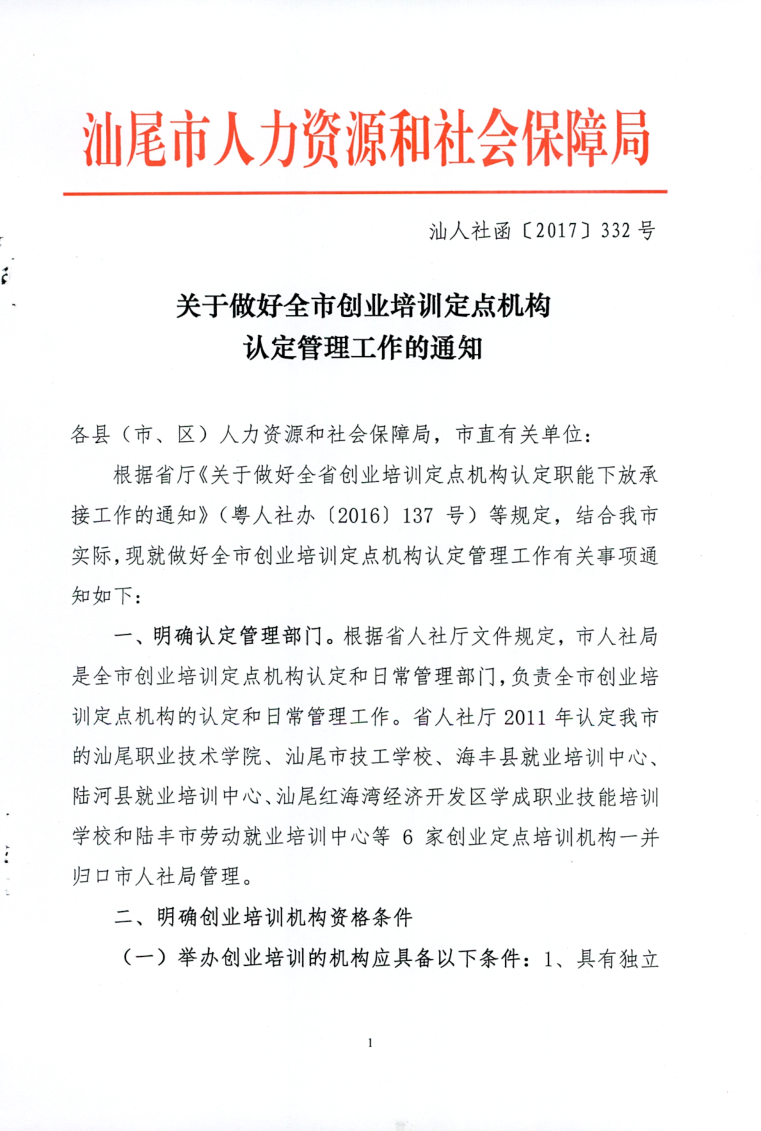 關(guān)于做好全市創(chuàng)業(yè)培訓(xùn)定點(diǎn)機(jī)構(gòu)認(rèn)定管理工作的通知