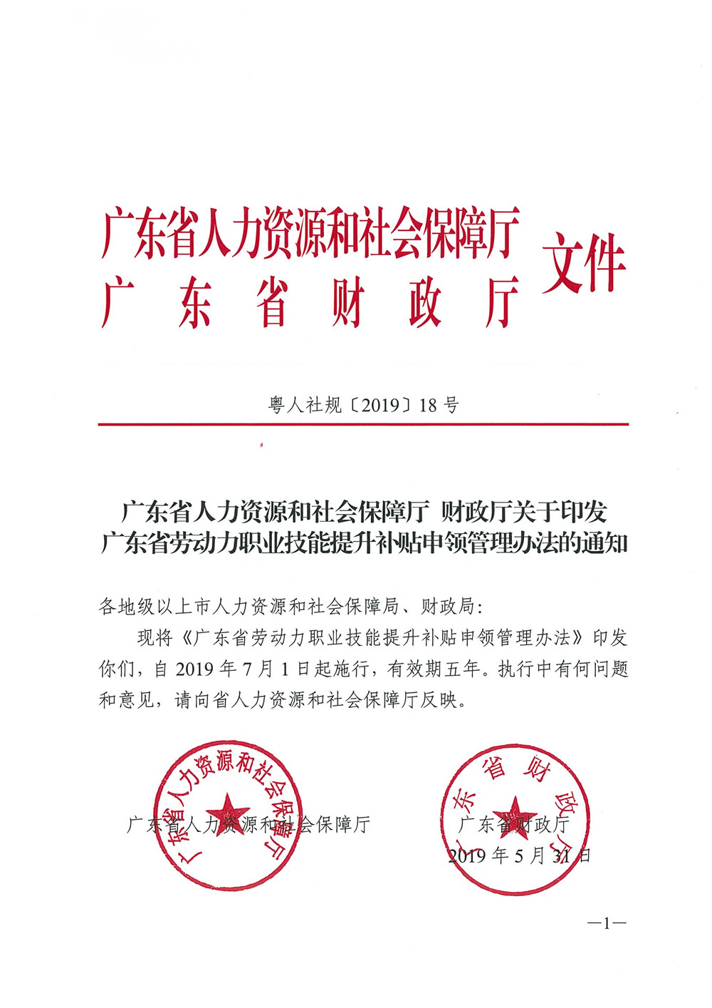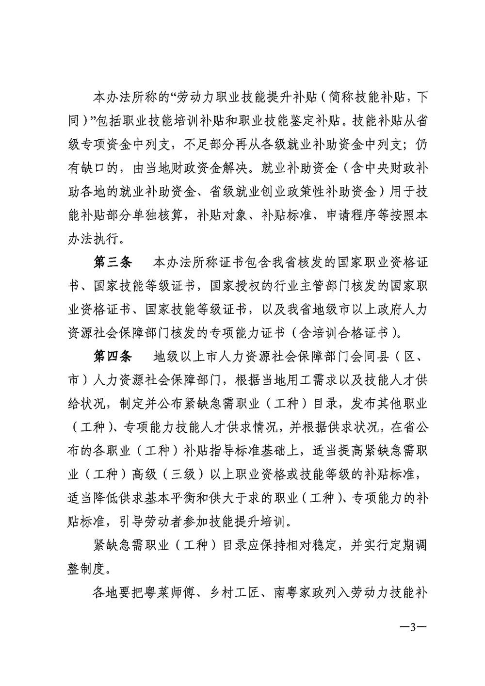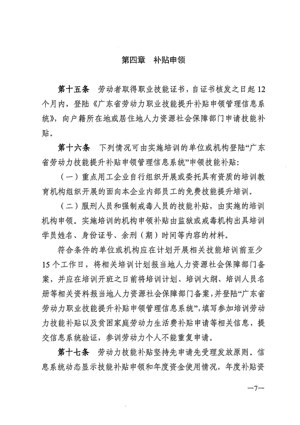 廣東省勞動(dòng)力職業(yè)技能提升補(bǔ)貼申領(lǐng)管理辦法的通知