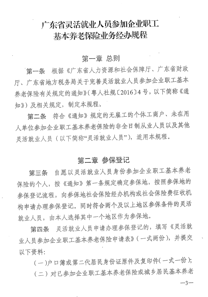 轉(zhuǎn)發(fā)廣東省靈活就業(yè)人員參加企業(yè)職工基本養(yǎng)老保險(xiǎn)業(yè)務(wù)經(jīng)辦規(guī)程的通知