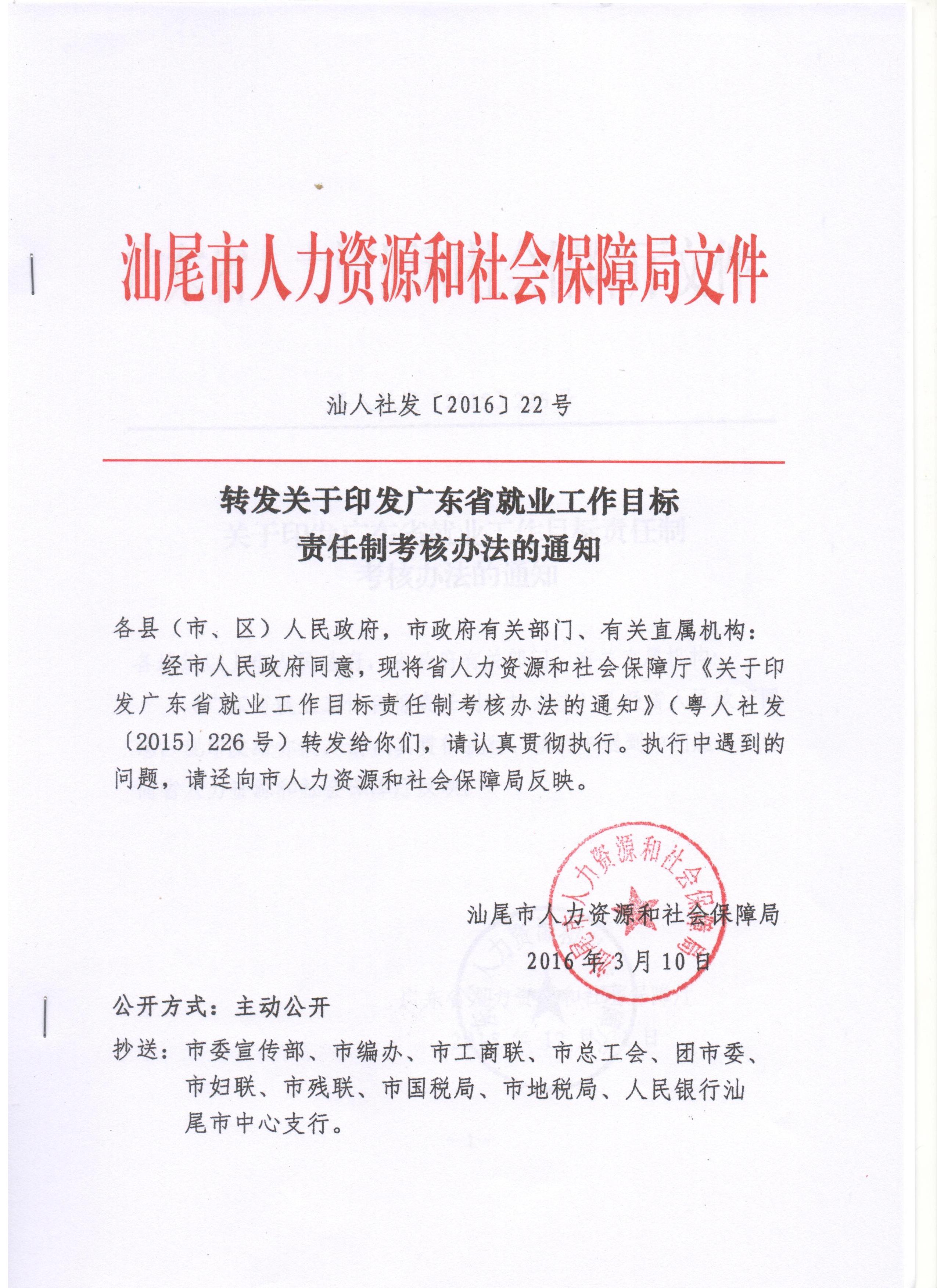 轉(zhuǎn)發(fā)關(guān)于印發(fā)廣東省就業(yè)工作目標(biāo)責(zé)任制考核辦法的通知