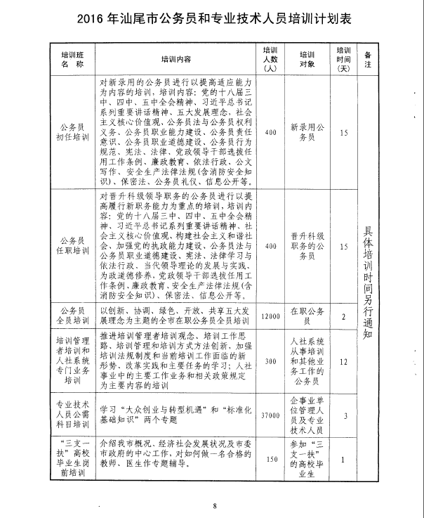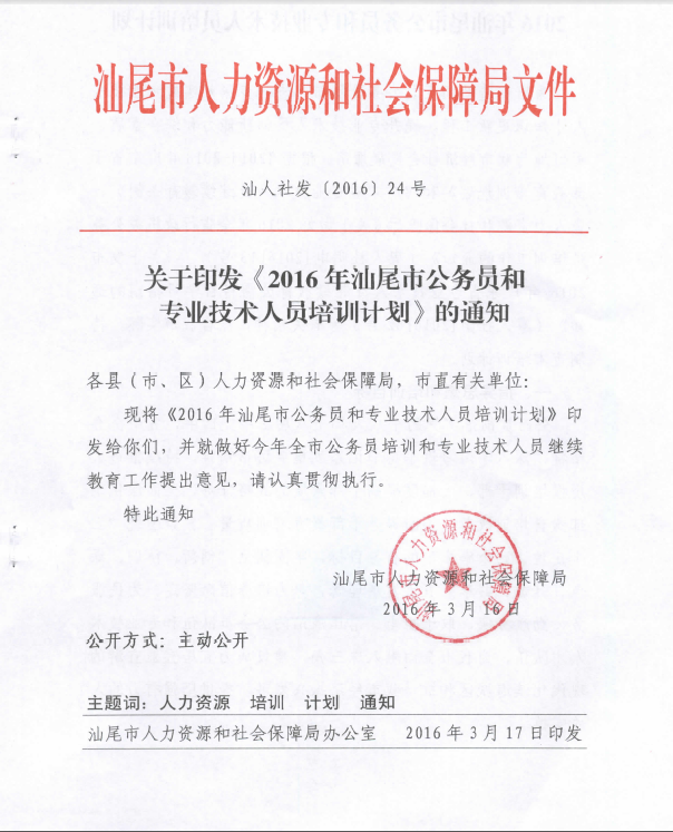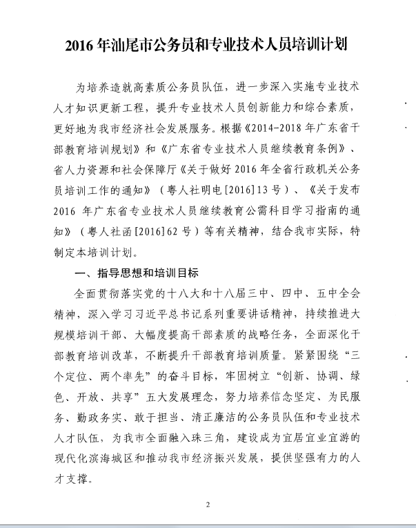 關(guān)于印發(fā)《2016年汕尾市公務(wù)員和專業(yè)技術(shù)人員培訓(xùn)計劃》的通知