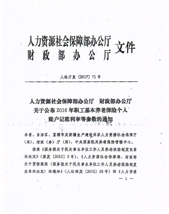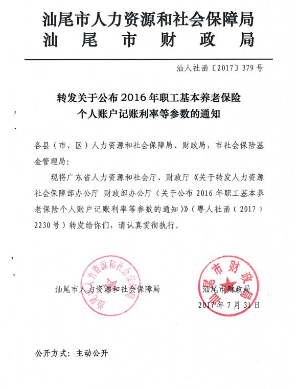 轉(zhuǎn)發(fā)關(guān)于公布2016年職工基本養(yǎng)老保險(xiǎn)個(gè)人賬戶記賬利率等參數(shù)的通知