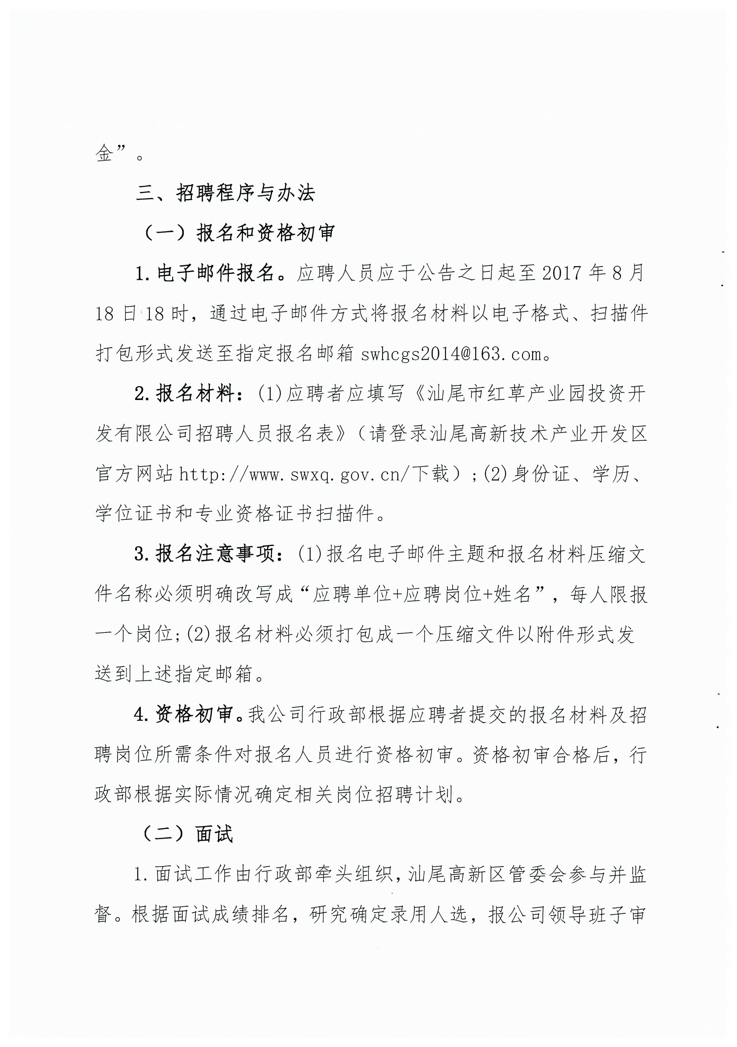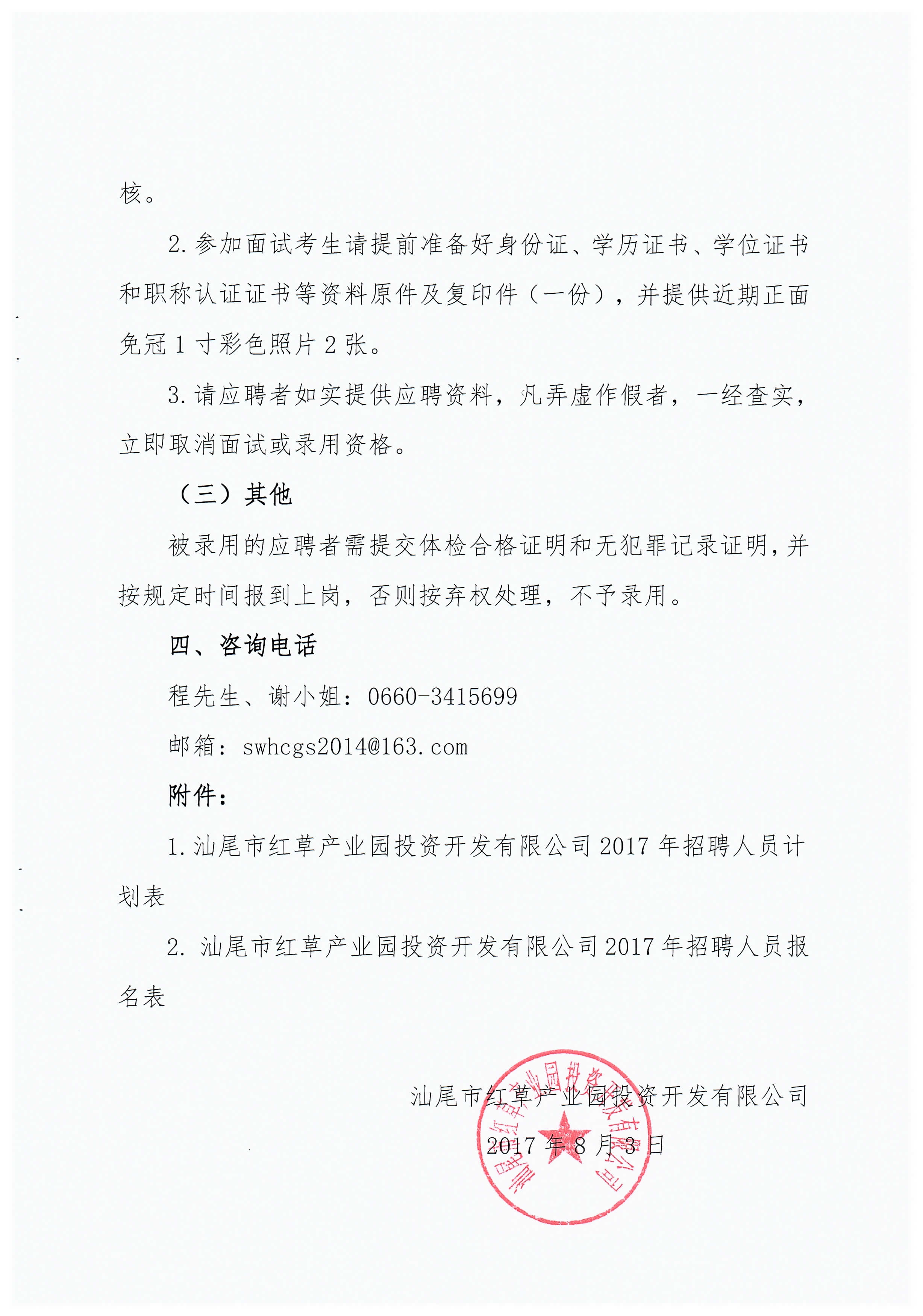 汕尾市紅草產(chǎn)業(yè)園區(qū)投資開發(fā)有限公司招聘公告