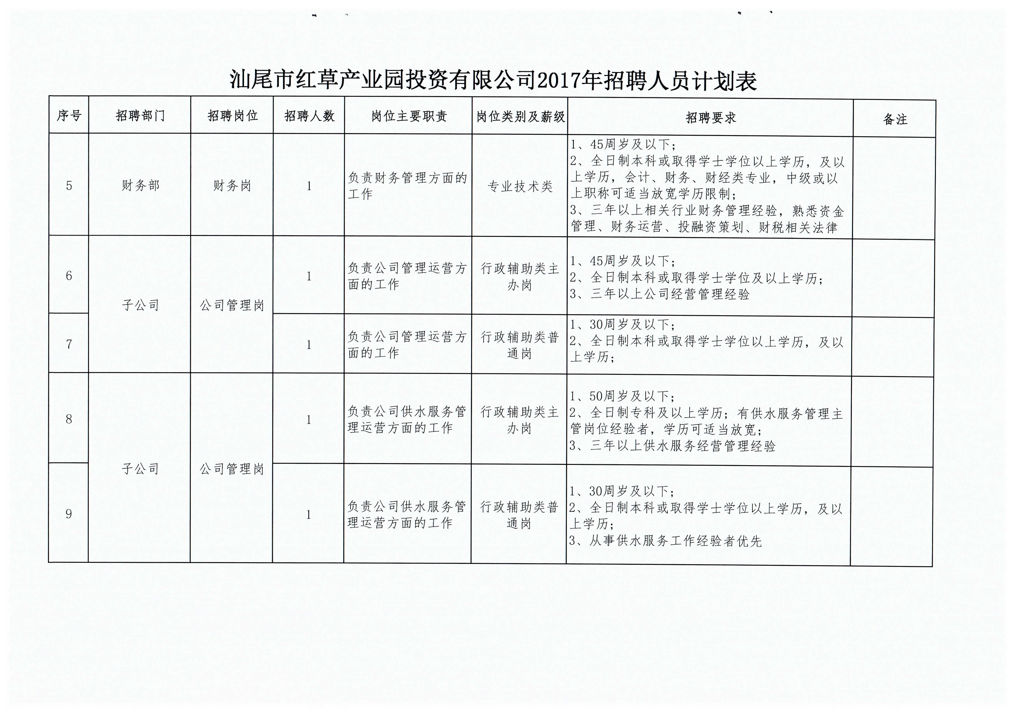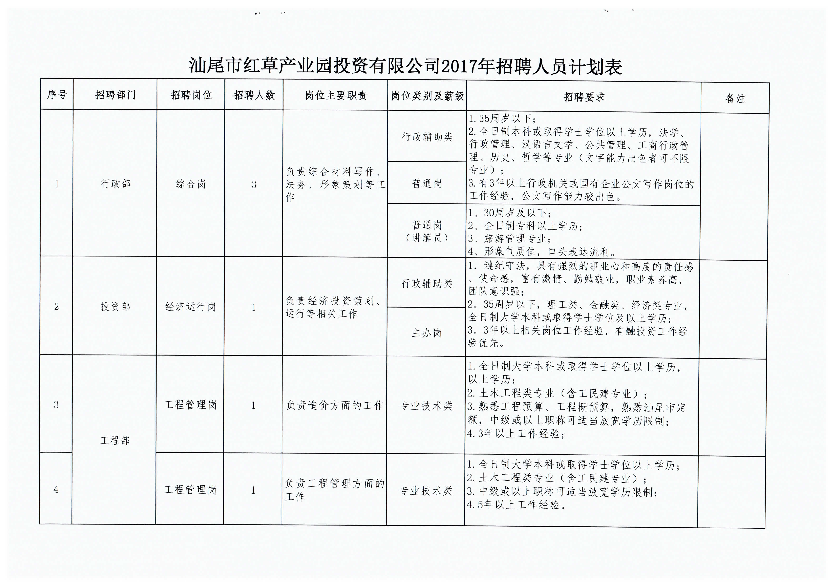 附件:汕尾市紅草產(chǎn)業(yè)園投資有限公司2017年招聘人員計(jì)劃表(2017-8-3).xlsx