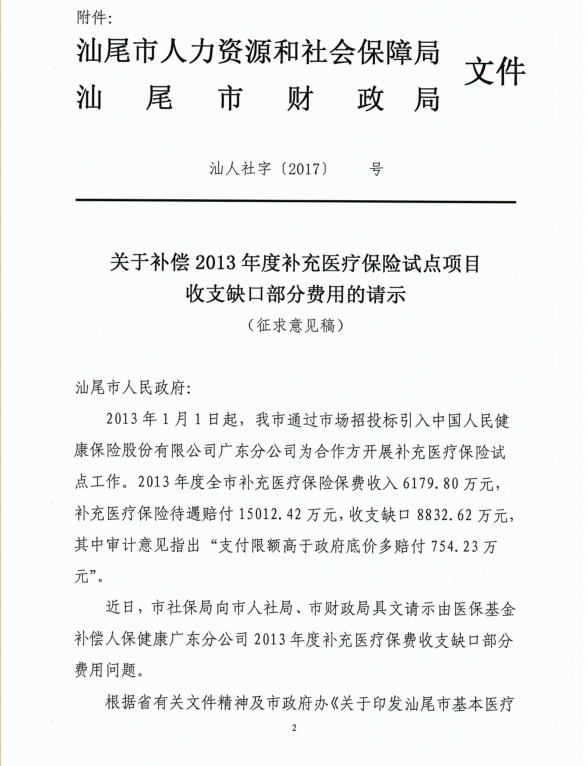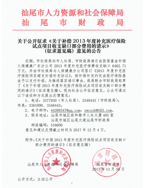 公開征求2013年度補充醫(yī)療保險試點項目收支缺口部分費用的公告