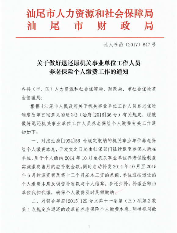 關(guān)于做好退還原機(jī)關(guān)事業(yè)單位工作人員養(yǎng)老保險個人繳費(fèi)工作的通知