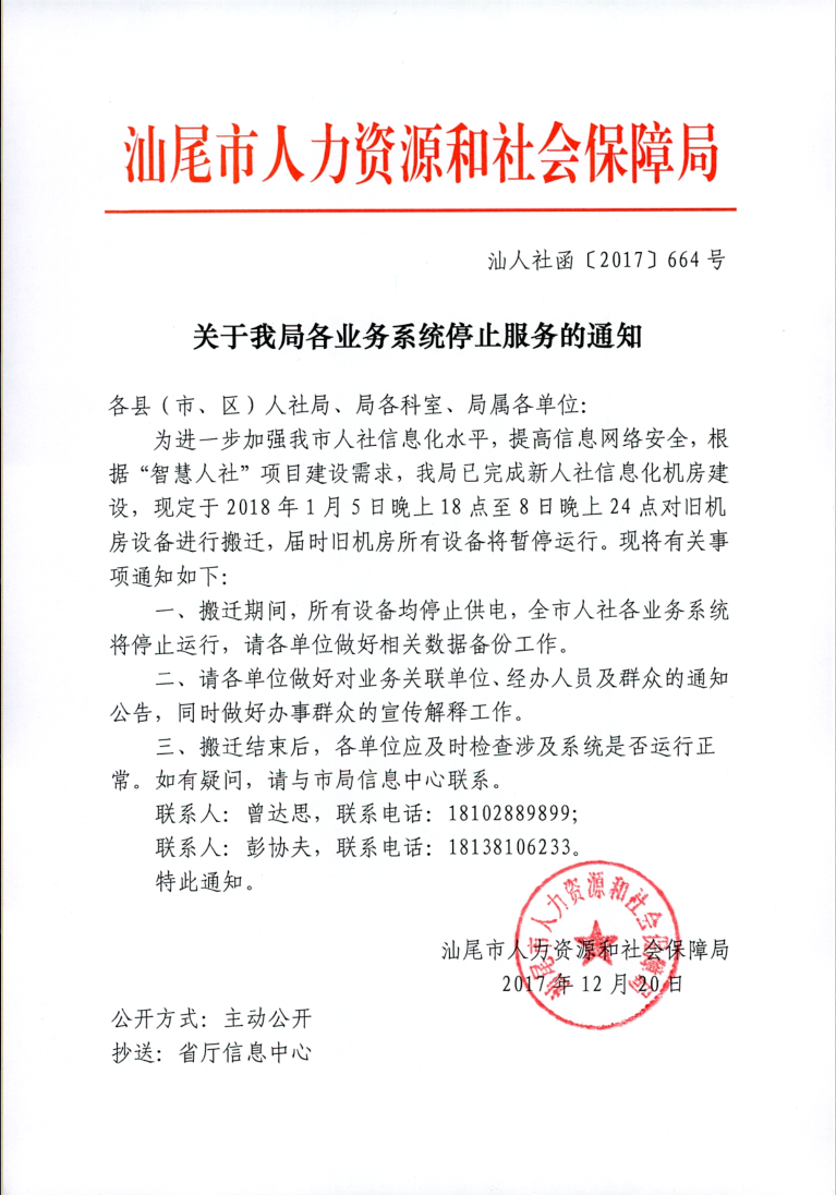 關(guān)于我局各業(yè)務(wù)系統(tǒng)停止服務(wù)的通知