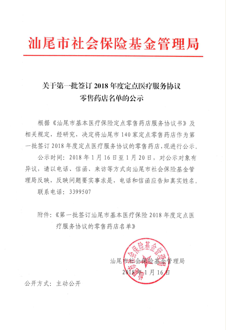 關(guān)于第一批簽訂2018年度定點(diǎn)醫(yī)療服務(wù)協(xié)議零售藥店名單的公示