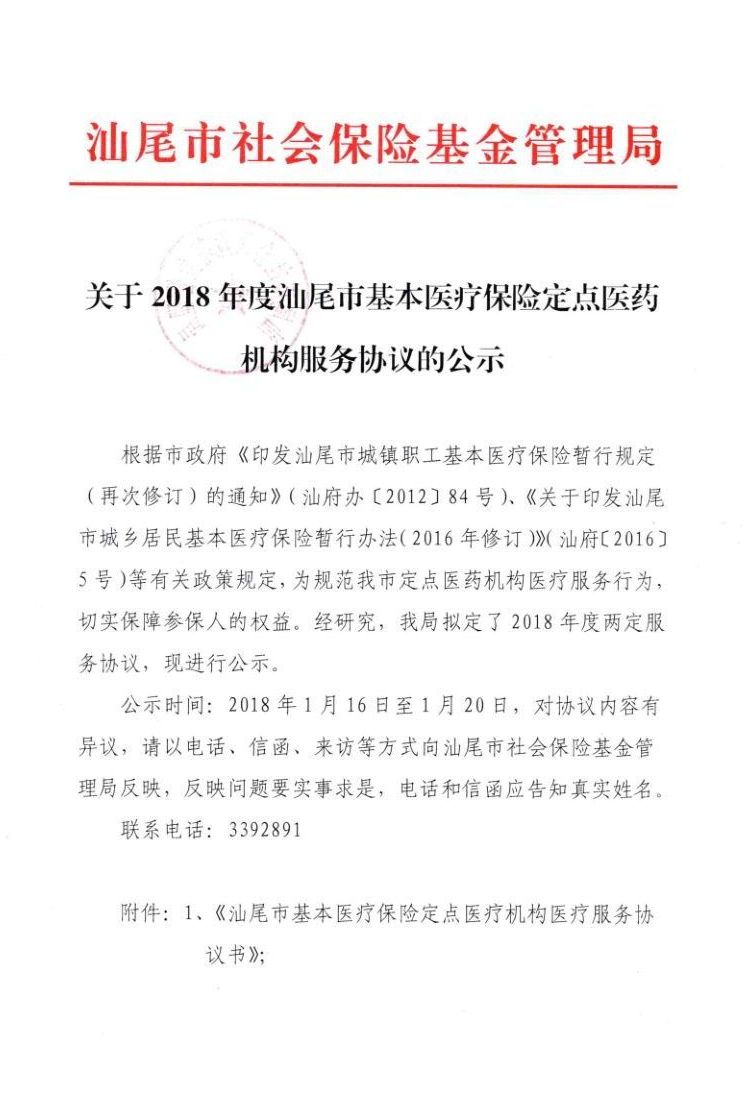 關(guān)于2018年度汕尾市基本醫(yī)療保險(xiǎn)定點(diǎn)醫(yī)藥機(jī)構(gòu)服務(wù)協(xié)議的公示