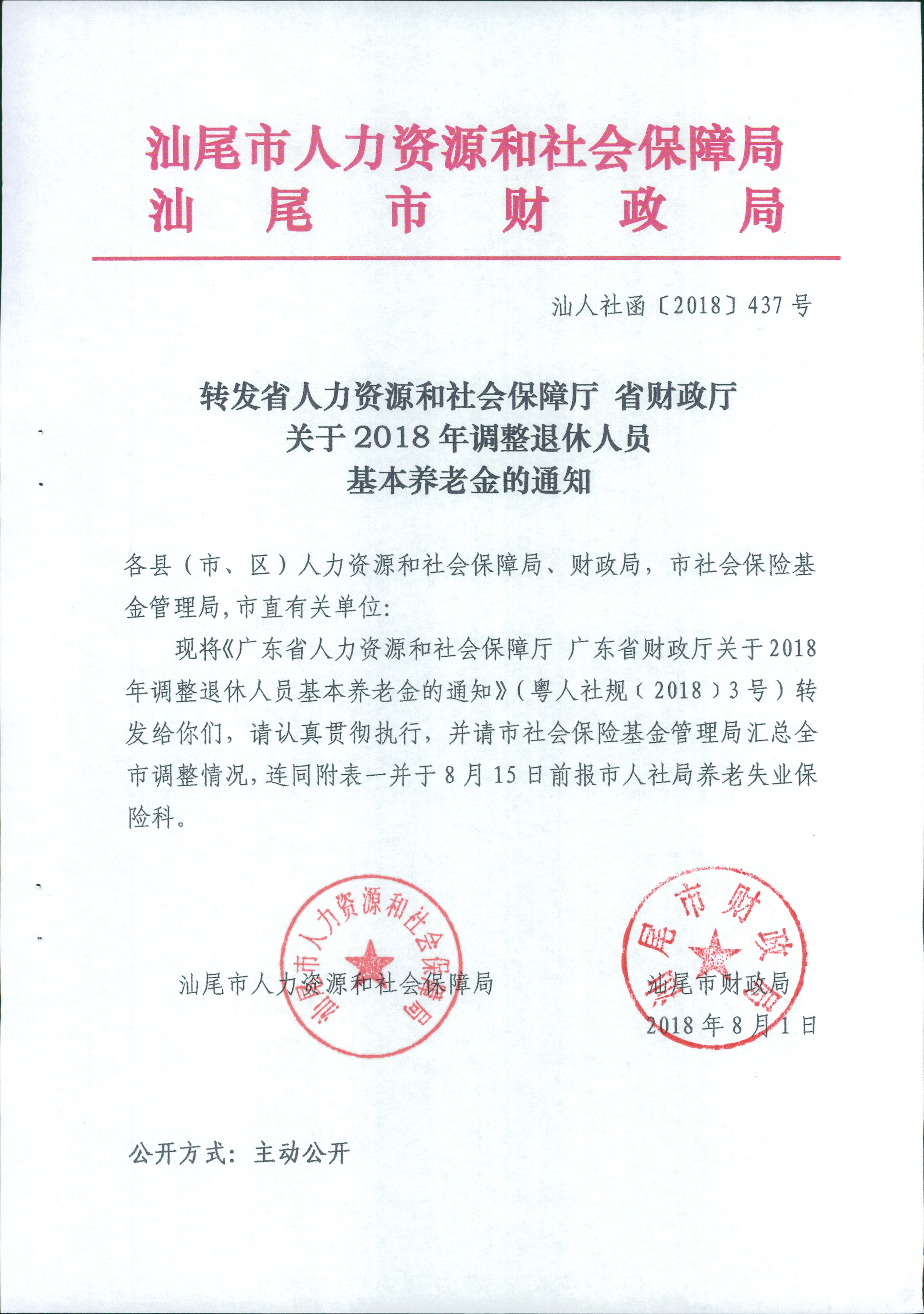 轉(zhuǎn)發(fā)省人社廳省財(cái)政廳關(guān)于2018年調(diào)整退休人員基本養(yǎng)老金的通知