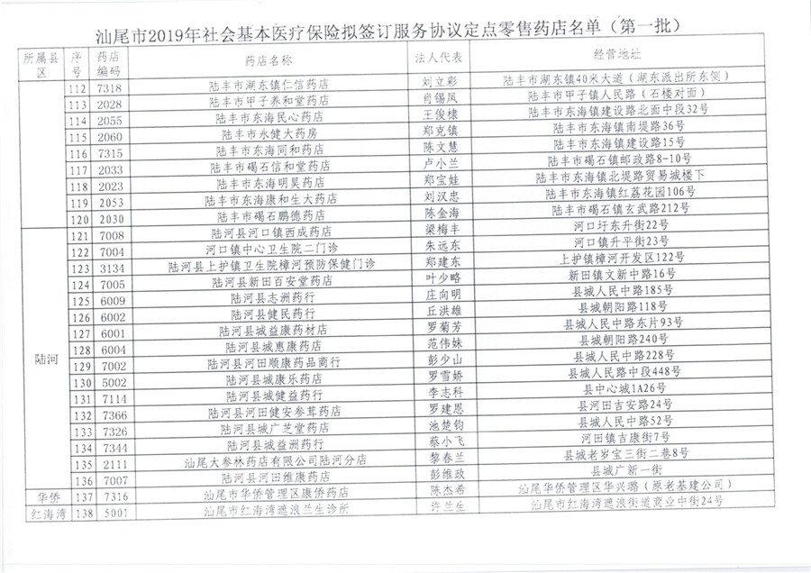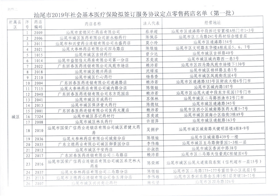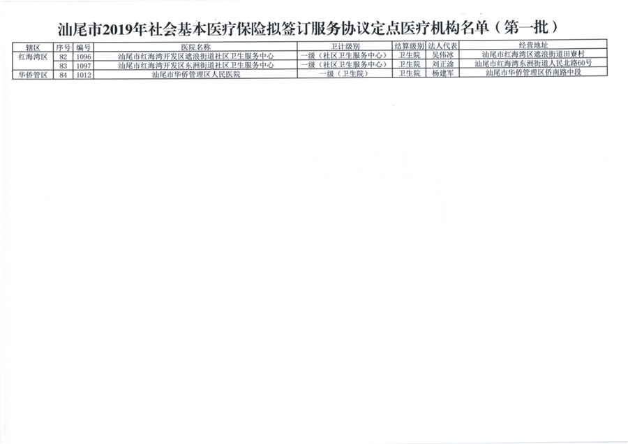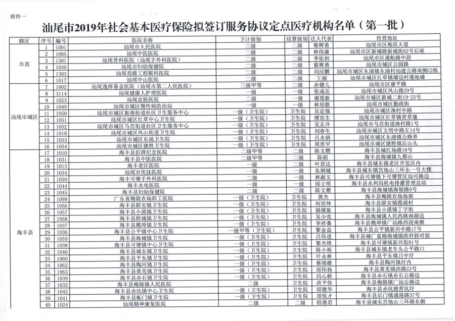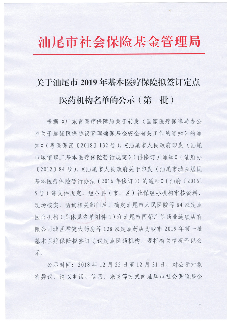 關(guān)于汕尾市2019年基本醫(yī)療保險(xiǎn)擬簽訂定點(diǎn)醫(yī)藥機(jī)構(gòu)名單的公示(第一批)