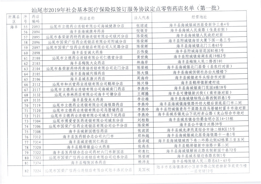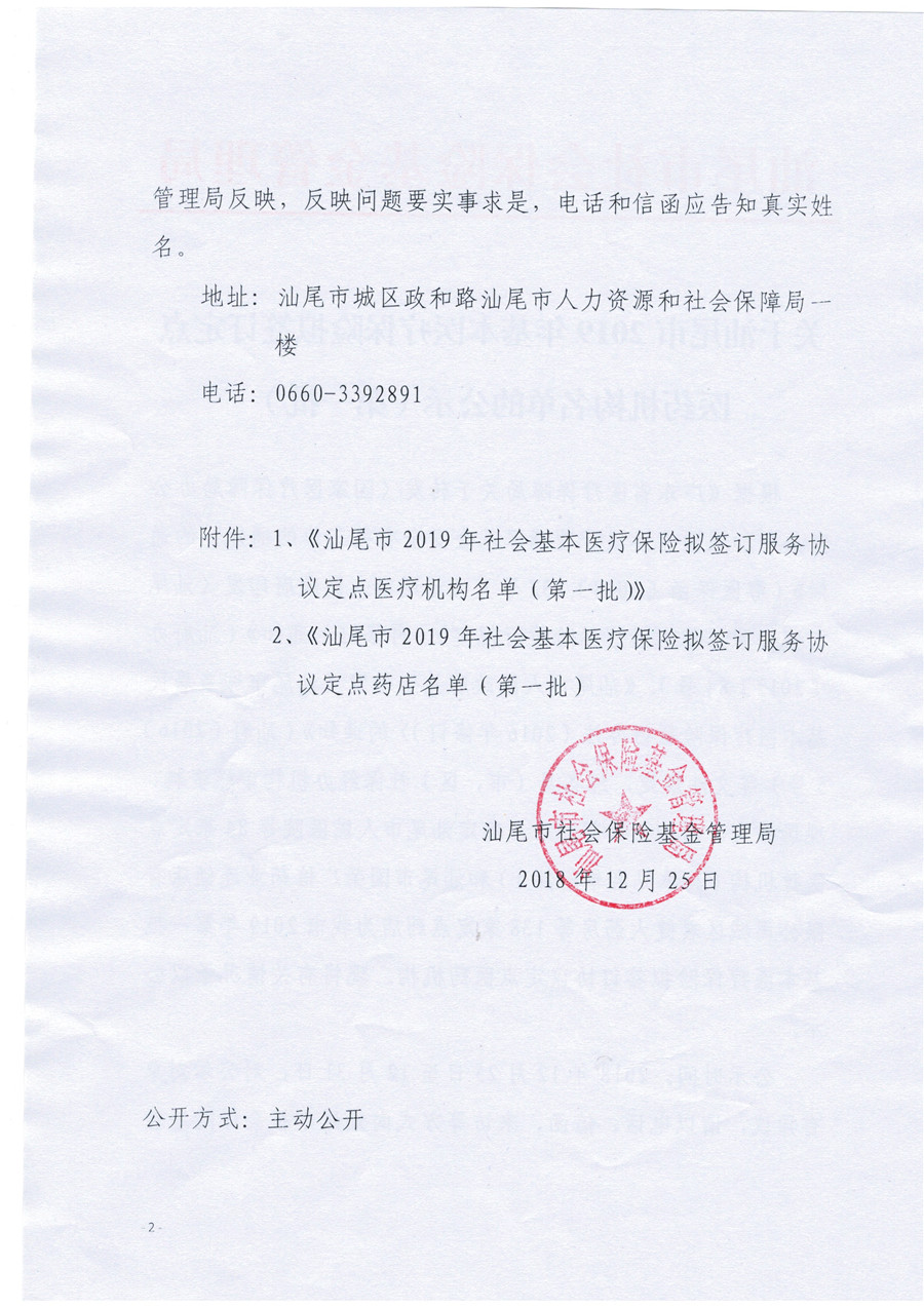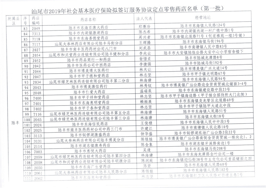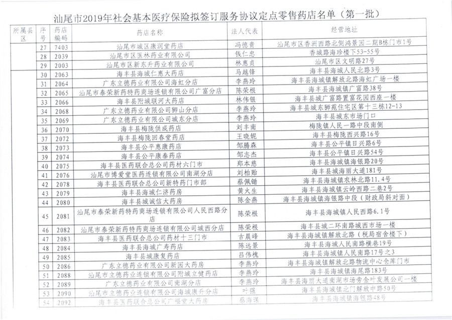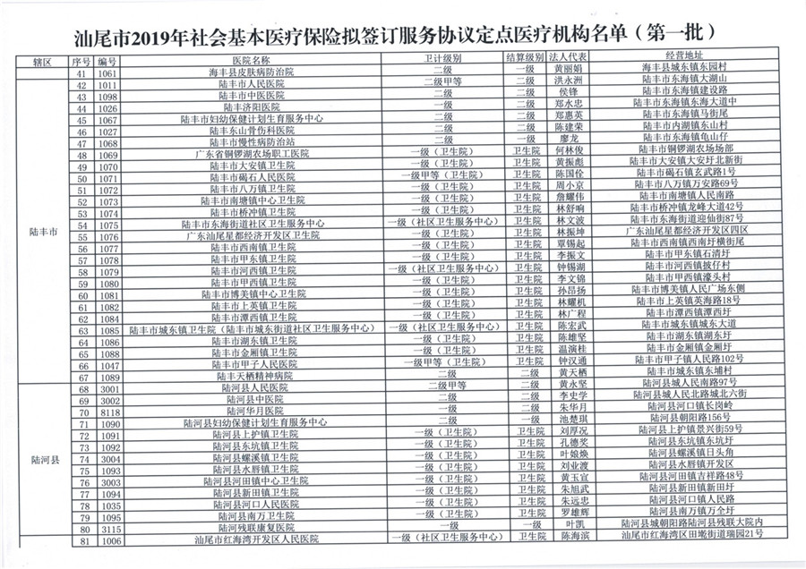 關(guān)于汕尾市2019年基本醫(yī)療保險(xiǎn)擬簽訂定點(diǎn)醫(yī)藥機(jī)構(gòu)名單的公示(第一批)