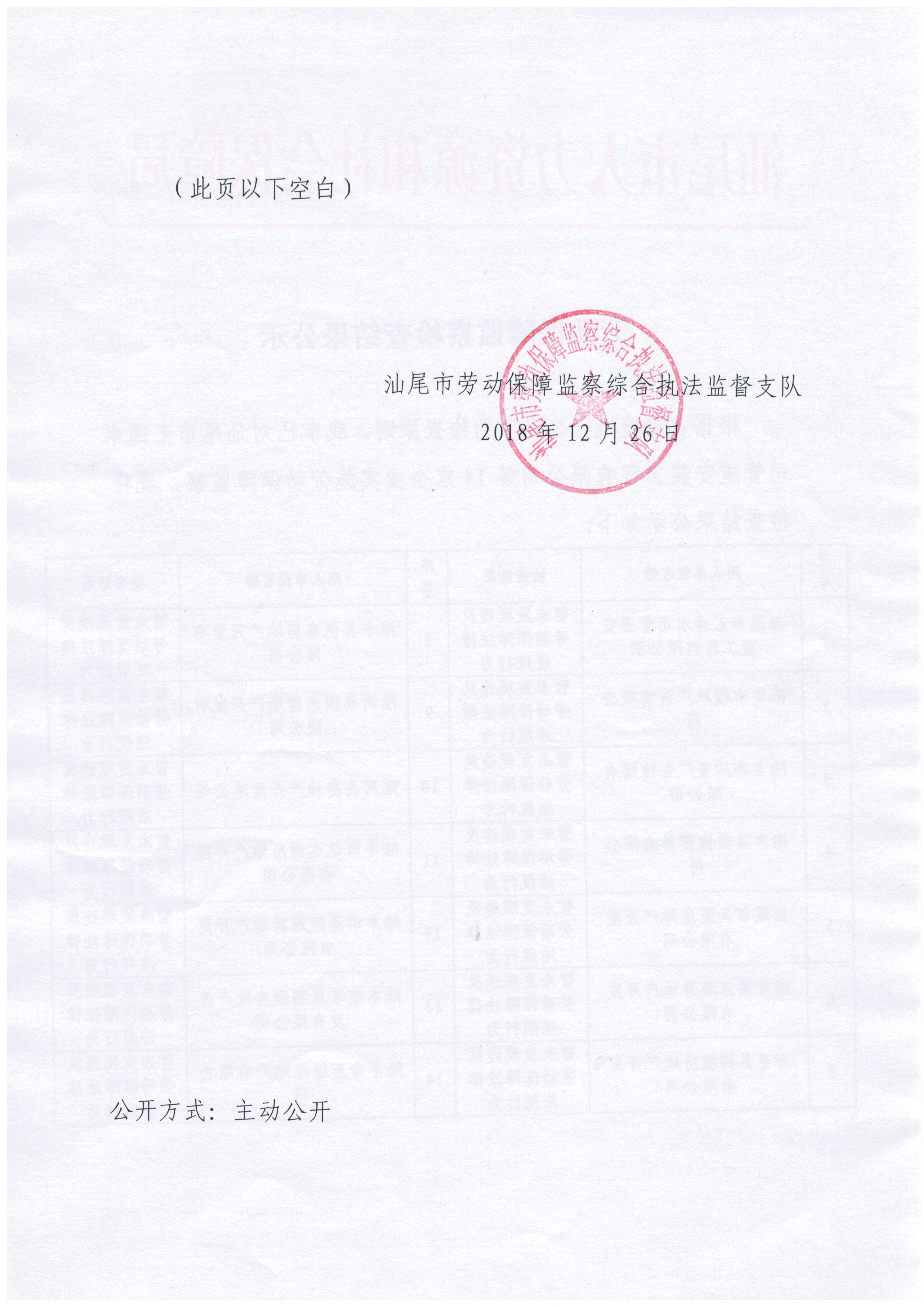 勞動(dòng)保障監(jiān)察檢查結(jié)果公示