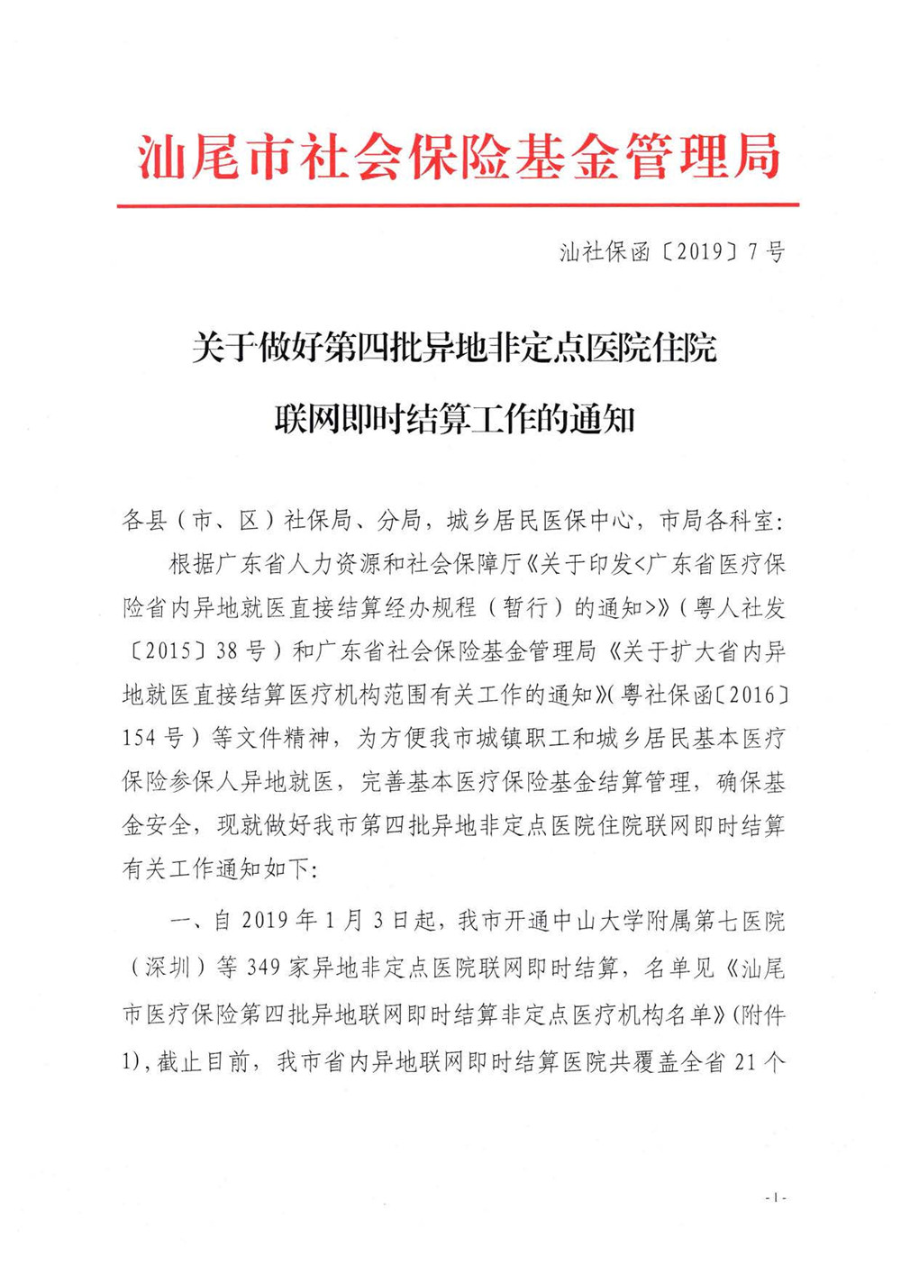 關(guān)于做好第四批異地非定點醫(yī)院住院聯(lián)網(wǎng)即時結(jié)算工作的通知
