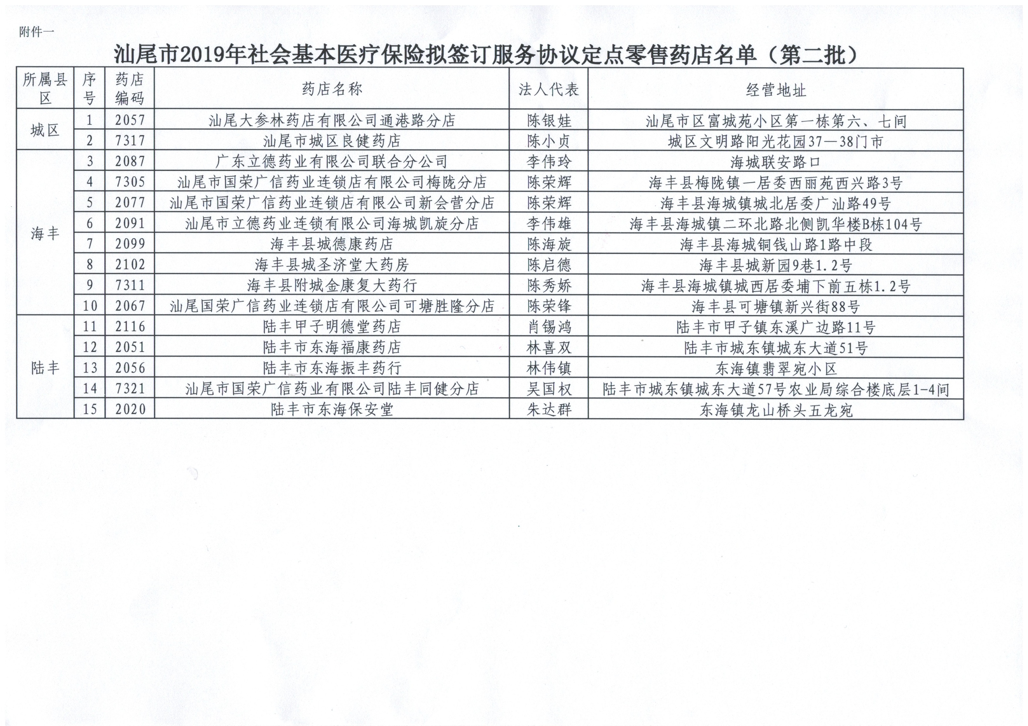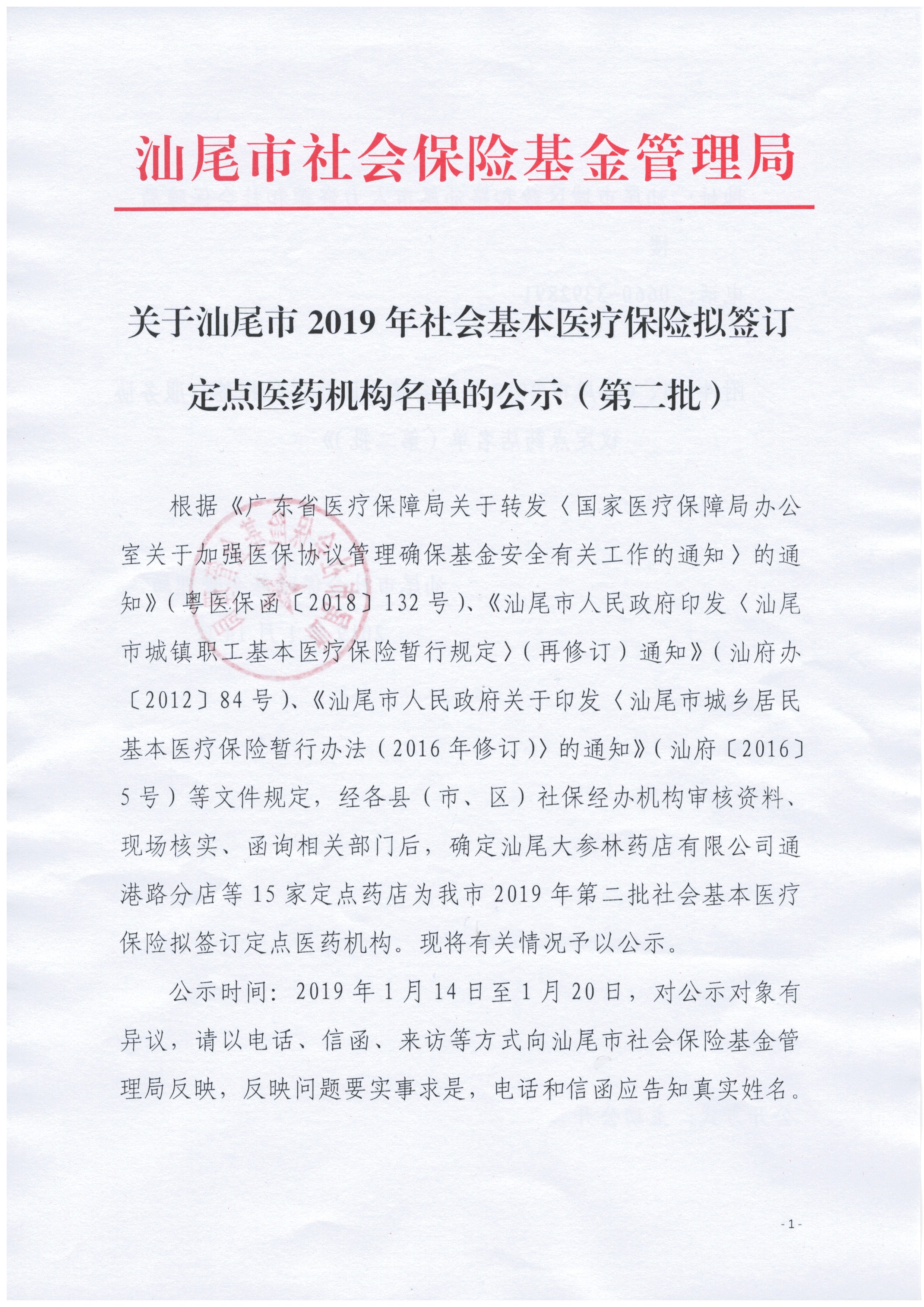 關(guān)于汕尾市2019年基本醫(yī)療保險擬簽訂定點醫(yī)藥機構(gòu)名單的公示(第二批)