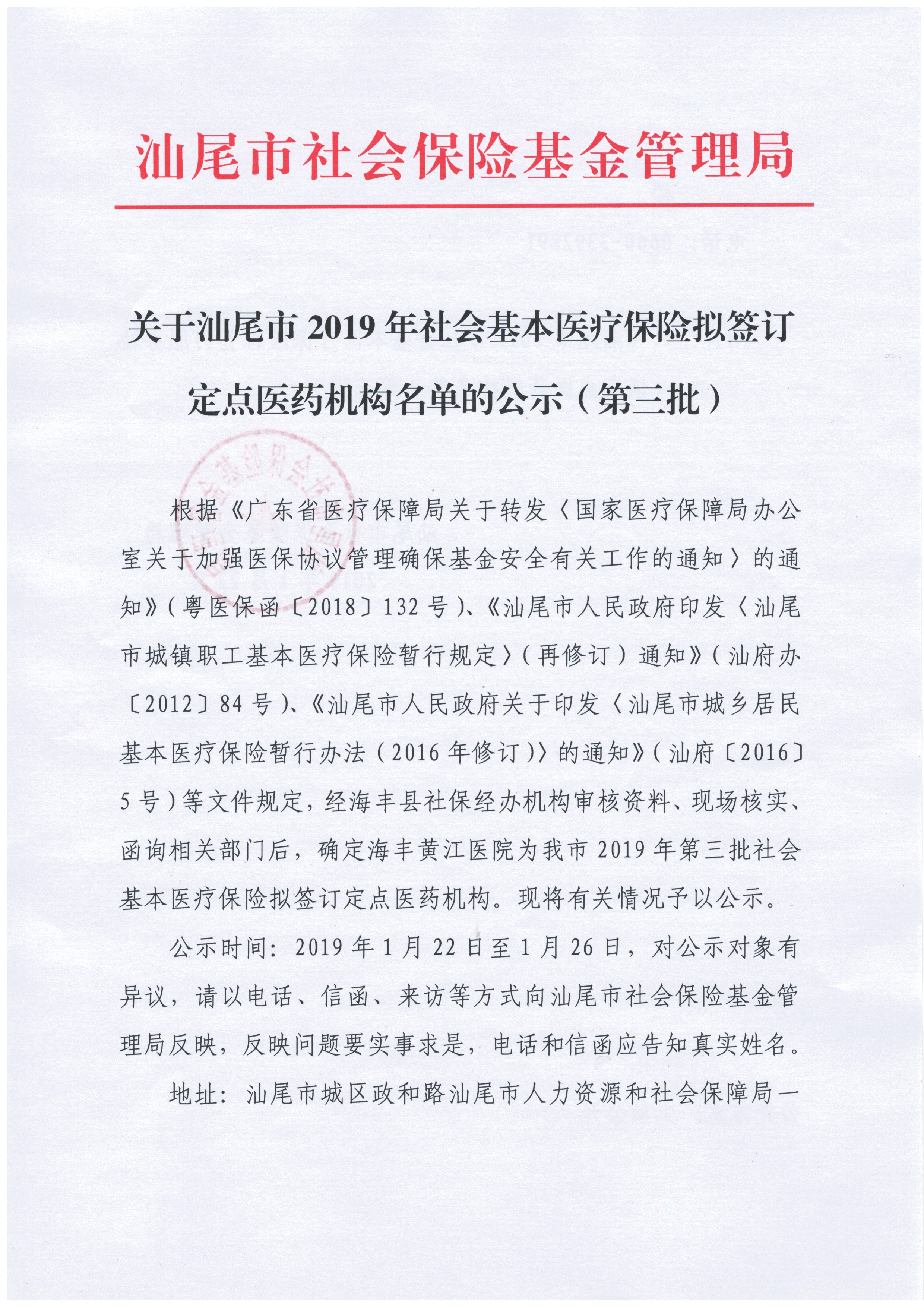 關(guān)于汕尾市2019年基本醫(yī)療保險(xiǎn)擬簽訂定點(diǎn)醫(yī)藥機(jī)構(gòu)名單的公示(第三批)