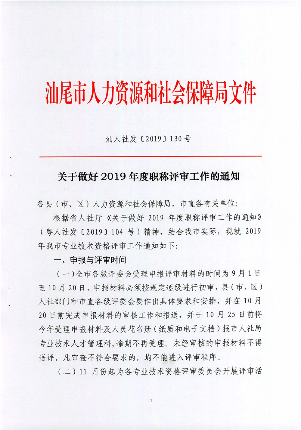 關(guān)于做好2019年度職稱評(píng)審工作的通知