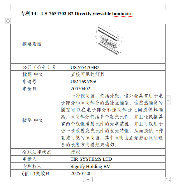 2023年7月14日,Signify在美國(guó)特拉華州地方法院向Current提起2起專利侵權(quán)訴訟(案號(hào):1:23-cv-00767、1:23-cv-00769),指控Current侵犯了其9項(xiàng)專利權(quán)。此外,Signify還于同日在美國(guó)國(guó)際貿(mào)易委員會(huì)向Current提起337調(diào)查(調(diào)查編碼:337-TA-1371),主張對(duì)美出口、在美進(jìn)口和在美銷售的該產(chǎn)品侵犯了3項(xiàng)專利權(quán),請(qǐng)求美國(guó)ITC發(fā)布有限排除令、禁止令。