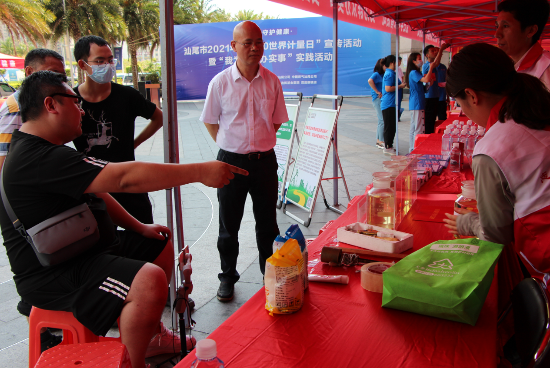 5月20日下午,汕尾市市場監(jiān)督管理局聯(lián)合市交警支隊、市城區(qū)市場監(jiān)督管理局、市質計所、汕尾供電局、中石化汕尾公司、中國燃氣汕尾公司、逸揮基金醫(yī)院、茂昌眼鏡店在汕尾市區(qū)明珠廣場舉行了“5·20世界計量日”咨詢、宣傳服務活動。活動現(xiàn)場設置服務臺,接受群眾咨詢、受理計量違法行為舉報投訴、提供計量器具免費檢測服務、免費為群眾測量血壓、視力等?,F(xiàn)場開展了有獎知識競答活動,知識競答圍繞計量基礎知識和黨史有關內容設定,以趣味有獎競答的形式,提高了知識競答的趣味性,場面十分熱烈,深受廣大市民朋友的好評。