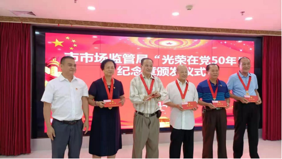 一百年波瀾壯闊,五十載初心如磐。在喜迎中國共產黨成立100周年之際,6月23日,市市場監(jiān)督管理局舉行簡樸而莊重的儀式,為市場監(jiān)管系統(tǒng)榮獲“光榮在黨50年”紀念章的老黨員頒發(fā)紀念章。