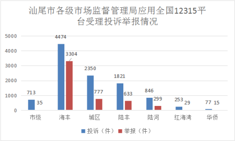 2023年,汕尾市各級(jí)市場(chǎng)監(jiān)督管理局統(tǒng)一應(yīng)用全國(guó)12315平臺(tái)受理各類舉報(bào)5092件,同比增長(zhǎng)18.91%;立案254宗,同比增長(zhǎng)93.89%;罰款金額56萬(wàn)元,沒收金額1.28萬(wàn)元。