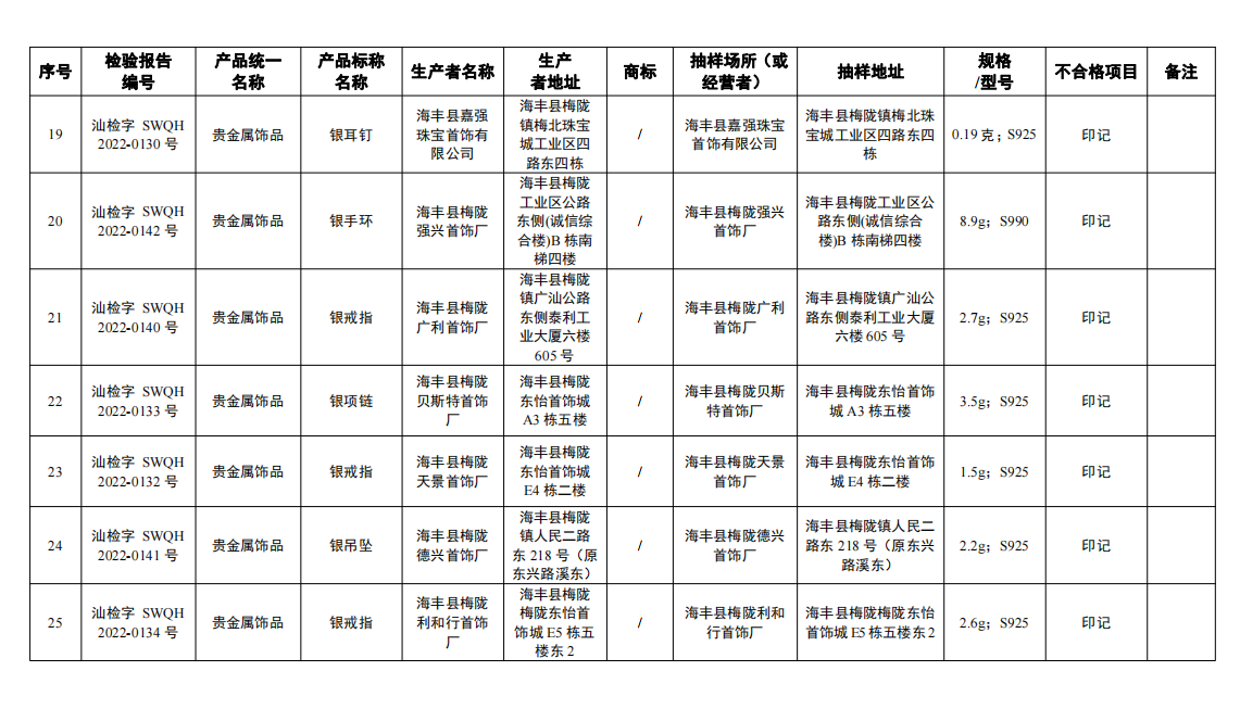 ?。ㄊ唬┲閷氂袷?。本次抽查產(chǎn)品25批次,發(fā)現(xiàn)不合格1批次,不合格產(chǎn)品發(fā)現(xiàn)率為4%。其中,1批次產(chǎn)品的珠寶玉石定名項(xiàng)目不合格。