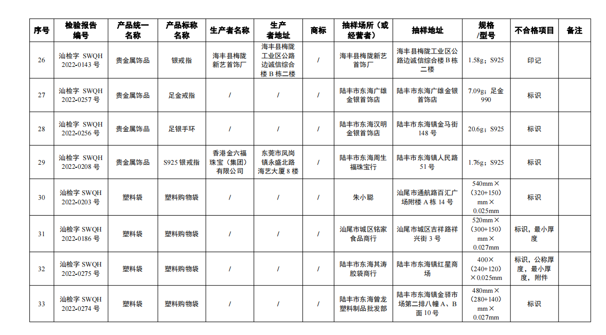 ?。ㄊ┵F金屬飾品。本次抽查產(chǎn)品59批次,發(fā)現(xiàn)不合格16批次,不合格產(chǎn)品發(fā)現(xiàn)率為27.12%。其中,5批次產(chǎn)品的標(biāo)識(shí)、11批次產(chǎn)品的印記、2批次產(chǎn)品的標(biāo)簽及其他標(biāo)識(shí)物項(xiàng)目不合格。