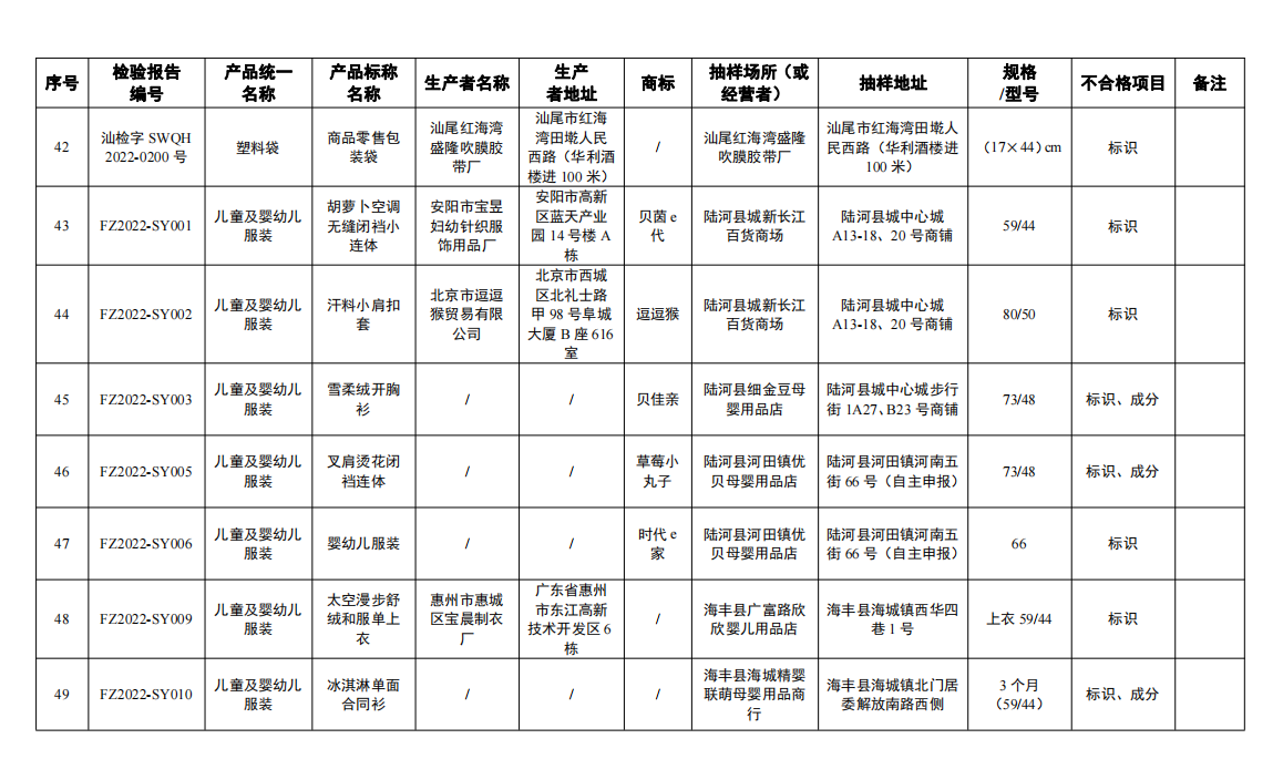 ?。ㄊ澹﹥和皨胗變悍b。本次抽查產(chǎn)品33批次,發(fā)現(xiàn)不合格22批次,不合格產(chǎn)品發(fā)現(xiàn)率為66.67%。其中,22批次產(chǎn)品的標(biāo)識(shí)、7批次產(chǎn)品的成份項(xiàng)目不合格。