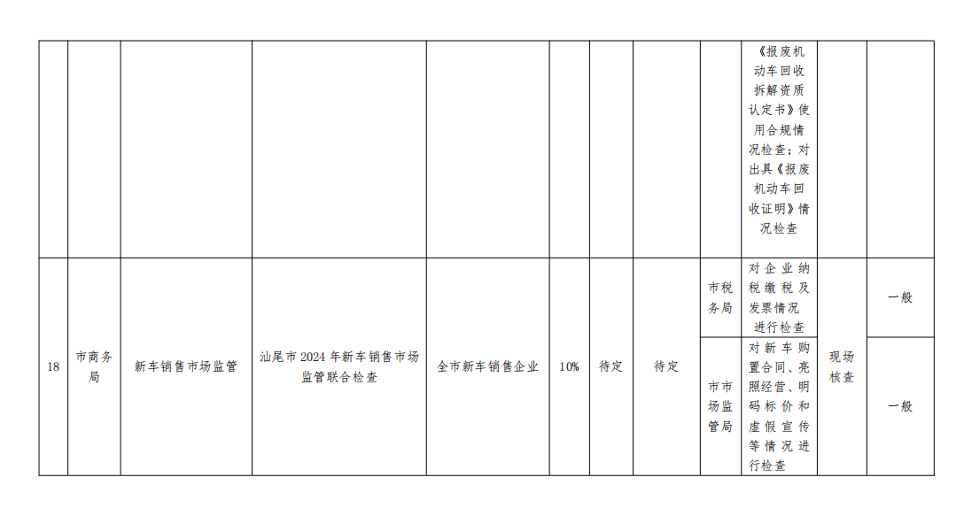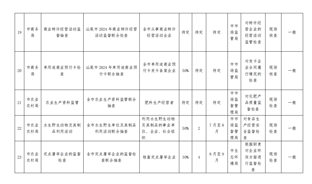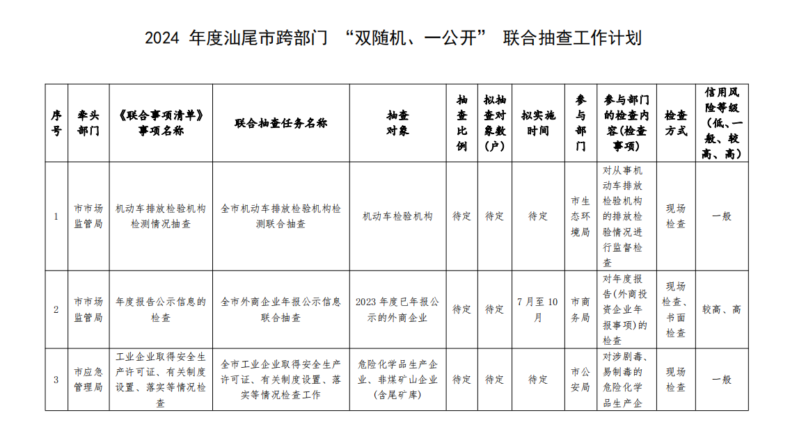 2024 年度汕尾市跨部門(mén) “雙隨機(jī)、一公開(kāi)” 聯(lián)合抽查工作計(jì)劃