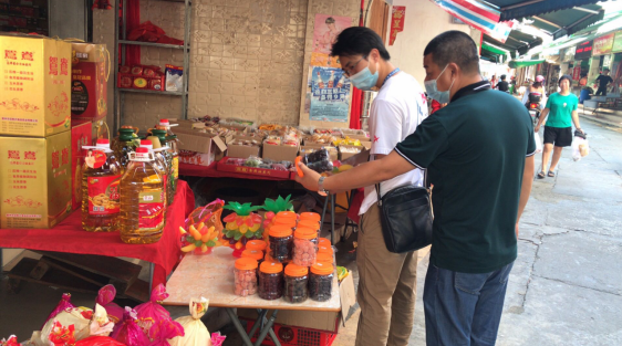 ?。ㄒ唬?qiáng)化監(jiān)管、加強(qiáng)宣傳,抓好農(nóng)貿(mào)市場(chǎng)疫情防控綜合治理。采取日常巡查和駐點(diǎn)的方式,不間斷的督促檢查農(nóng)貿(mào)市場(chǎng)疫情防控工作,重點(diǎn)檢查從業(yè)人員口罩佩戴、體溫監(jiān)測(cè)及消殺等情況。與轄區(qū)4個(gè)市場(chǎng)管理方簽訂《農(nóng)貿(mào)市場(chǎng)疫情防控工作承諾書》,壓實(shí)農(nóng)貿(mào)市場(chǎng)主體責(zé)任。通過(guò)LED宣傳標(biāo)語(yǔ)、防控溫馨提示宣傳橫幅以及執(zhí)法人員在日常巡查中向市場(chǎng)開辦方和經(jīng)營(yíng)戶宣傳防疫知識(shí),引導(dǎo)經(jīng)營(yíng)戶正確佩戴口罩,進(jìn)一步加大廣大群眾對(duì)疫情防控重要性的認(rèn)識(shí),提高廣大群眾防控意識(shí)。