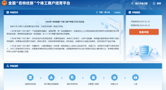 個(gè)體工商戶結(jié)合實(shí)際經(jīng)營情況,選擇“名特優(yōu)新”其一進(jìn)行申報(bào),按照系統(tǒng)申報(bào)要求對(duì)應(yīng)上傳佐證材料即可完成申報(bào)。