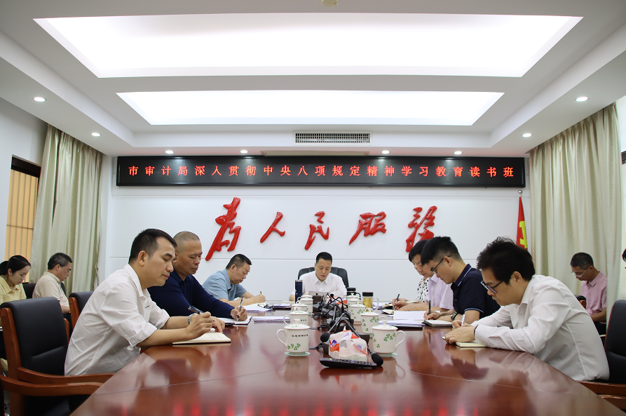 5月26日,市審計局黨組舉辦深入貫徹中央八項規(guī)定精神學(xué)習(xí)教育讀書班暨理論學(xué)習(xí)中心組(擴大)學(xué)習(xí)會。讀書班采取集體研討和個人自學(xué)相結(jié)合的方式進行,局班子成員認真學(xué)習(xí)《習(xí)近平關(guān)于加強黨的作風(fēng)建設(shè)論述摘編》《習(xí)近平總書記關(guān)于黨的建設(shè)的重要思想概論》、中央八項規(guī)定及其實施細則精神等學(xué)習(xí)材料,并作交流發(fā)言。局黨組書記、局長辛海主持讀書班并作講話。