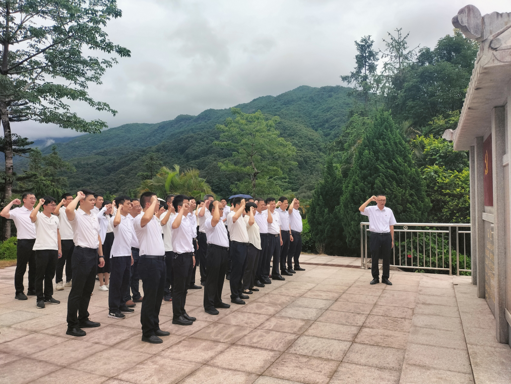 在新田激石溪革命教育基地,全體干部職工沿著299級臺階緩緩攀登,通過聆聽講解,深入學(xué)習(xí)了以彭湃、楊其珊為代表的革命先烈領(lǐng)導(dǎo)海陸豐蘇維埃革命的斗爭史,深刻體會了海陸豐蘇維埃革命斗爭在中國人民爭取獨立、自由和解放斗爭歷史上所發(fā)揮的“豐碑”作用。在烈士紀(jì)念碑前,辛海同志帶領(lǐng)大家整齊列隊,向革命英烈鞠躬默哀,并繞行瞻仰烈士公墓,表達深刻緬懷和崇高敬意。最后,在鮮紅的黨旗下,全體黨員佩戴黨員徽章,舉起右手,握緊拳頭,面對鮮紅的黨旗重溫入黨誓詞,重溫“初心”,堅定理想信念。