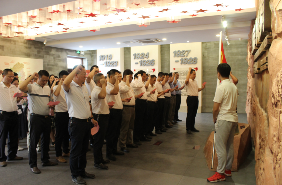在革命烈士雕像前。全體黨員干部面向革命烈士重溫入黨誓詞。“我志愿加入中國共產(chǎn)黨,擁護(hù)黨的綱領(lǐng),遵守黨的章程,履行黨員義務(wù),……隨時準(zhǔn)備為黨和人民犧牲一切,永不叛黨”,全體黨員面對黨旗和海陸豐革命先烈雕像,莊嚴(yán)宣誓,聲音鏗鏘而豪邁。