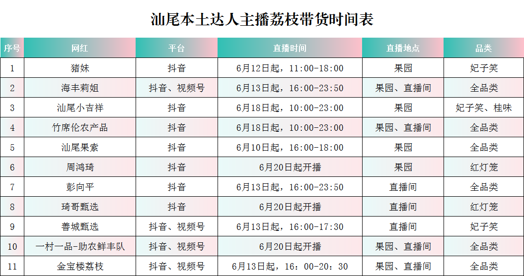 汕尾達人主播直播時刻表,具體以實際播出時間為準