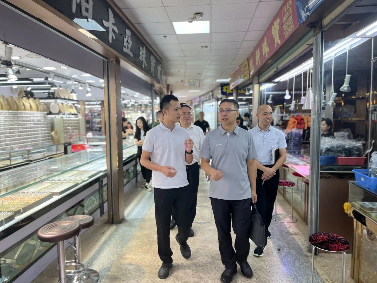 調(diào)研首站,調(diào)研組一行蒞臨海豐縣達(dá)米拉電子商務(wù)有限公司,詳細(xì)了解企業(yè)發(fā)展歷程、業(yè)務(wù)布局與品牌建設(shè)情況。隨后,實(shí)地考察可塘鎮(zhèn)珠寶交易市場(chǎng),深入了解可塘鎮(zhèn)珠寶產(chǎn)業(yè)帶發(fā)展歷史與現(xiàn)有規(guī)模情況,并與市場(chǎng)內(nèi)多家商戶(hù)深入洽談,細(xì)致詢(xún)問(wèn)經(jīng)營(yíng)情況。