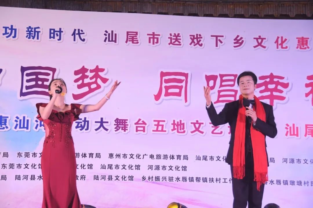 為進(jìn)一步貫徹落實(shí)《廣東省加快推進(jìn)文化和旅游融合發(fā)展三年行動(dòng)計(jì)劃》戰(zhàn)略規(guī)劃,推動(dòng)深莞惠+汕尾、河源五市文化資源共享聯(lián)動(dòng),打造富有各地特色的文化巡演,推進(jìn)跨區(qū)域文化志愿服務(wù)活動(dòng)走深走實(shí)。2023年3月18日,“奮進(jìn)新征程 建功新時(shí)代”2022年汕尾市送戲下鄉(xiāng)文化惠民活動(dòng)暨“共筑中國(guó)夢(mèng) 同唱幸福歌”2022年深莞惠汕河流動(dòng)大舞臺(tái)五地文藝巡演(汕尾專(zhuān)場(chǎng))活動(dòng)在陸河縣水唇鎮(zhèn)墩塘村委廣場(chǎng)舉辦。